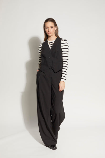 South Pant in Black, a sophisticated and versatile addition to your wardrobe. These wide-leg pants feature a single pleat design, complete with convenient pockets and a zip fly for added functionality. For a polished and coordinated look, consider pairing them with our Cardinal Waistcoat and North Blazer in Black, creating a stunning full suit ensemble. Also comes in Vanilla