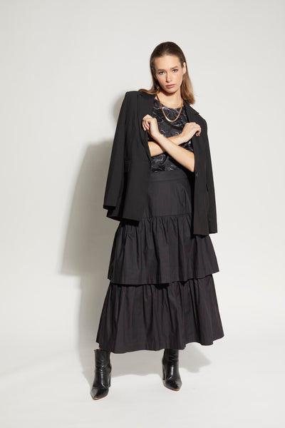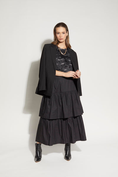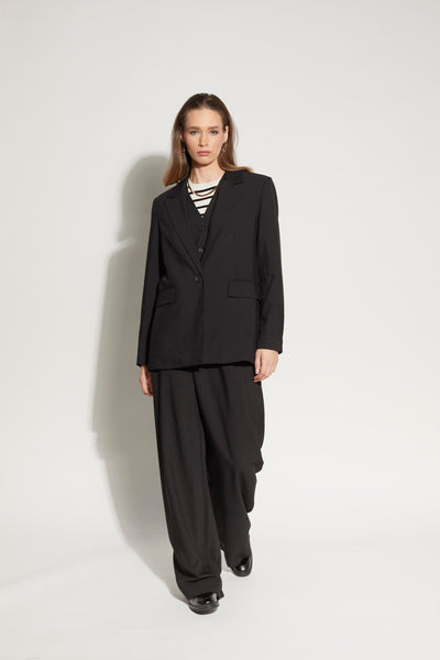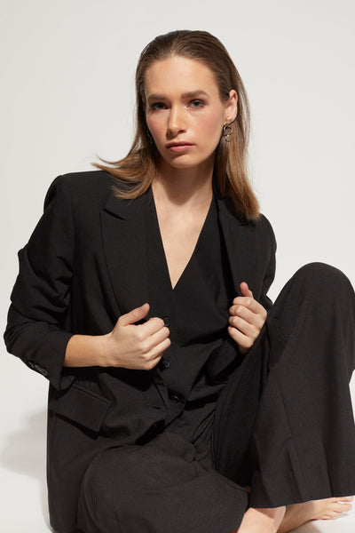 North Blazer - a sophisticated and stylish single-breasted blazer featuring a wide collar. This exquisite piece is meticulously crafted with a fully lined interior and thoughtfully designed front pockets for added convenience. For a complete and polished look, we recommend pairing it with our Cardial Waistcoat. And to complete the ensemble, don't forget to complement it with our South Pants. Elevate your style with this impeccable combination.