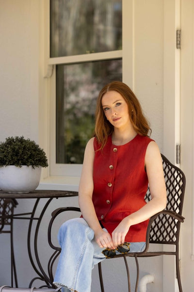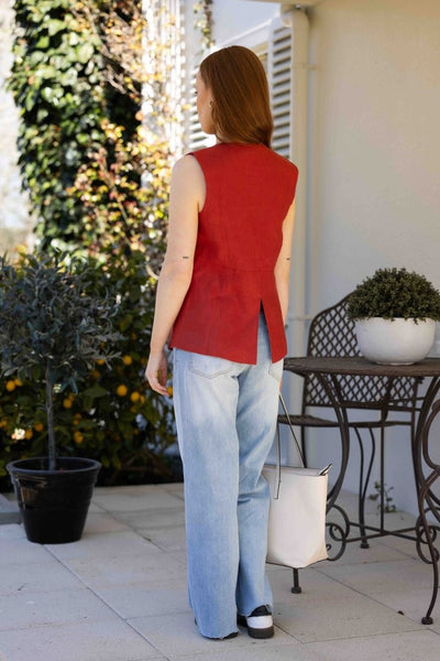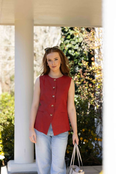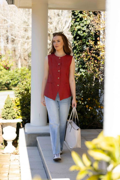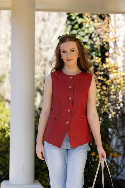 Brooklyn Vest by Drama the Label—a stunning longline design featuring a classic crewneck, stylish button details, and a chic back split. This vest is fully lined for added comfort and elegance. Pair it with the Together Short for a trendy coordinated look, or mix and match it with any of your favorite Drama bottoms for endless styling possibilities!
