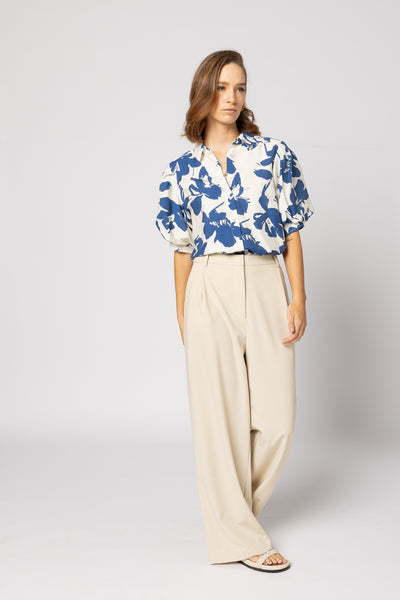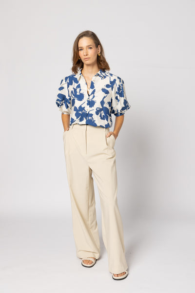 The Haven Shirt from Drama the Label is a stunning piece featuring puff sleeves with elastic at back for ease of comfort, a collar and a button front, in a beautiful Blue Flower Print that will pair with many Drama bottoms for a stylish look.