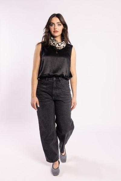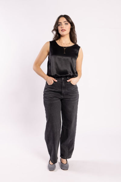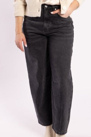 The must-have Seasons Balloon Leg Jeans from Drama the Label. These comfortable and relaxed jeans feature a zip fly, front and back pockets, and a Black wash. Elevate your wardrobe with these stylish and versatile jeans that are perfect for any season.